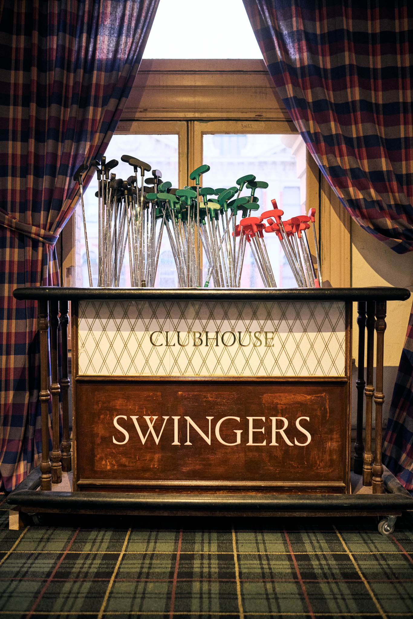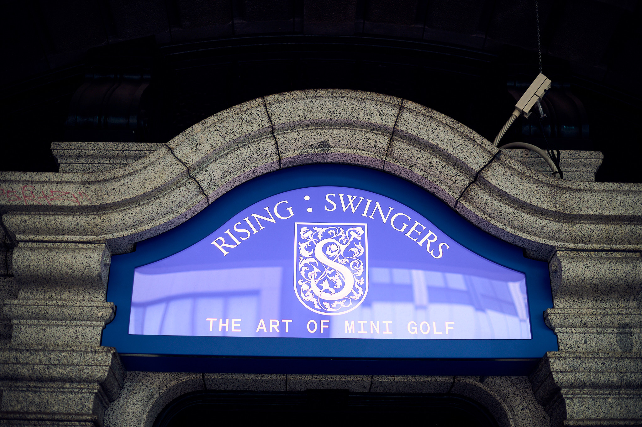 Callum McGregor, RISING’s lead designer at the time, concepted the brand visuals, exploring a modern update on traditional golf clubhouse crests with ’80s punk aesthetics and Riot Grrl references. The typography was RISING’s Portrait and Sohne Mono Buch fonts to retain connection to the master brand. Sam West, RISING’s copywriter, developed the tagline and copy. The Swingers sub-brand was applied to campaign creative, signage, merchandise, and more.